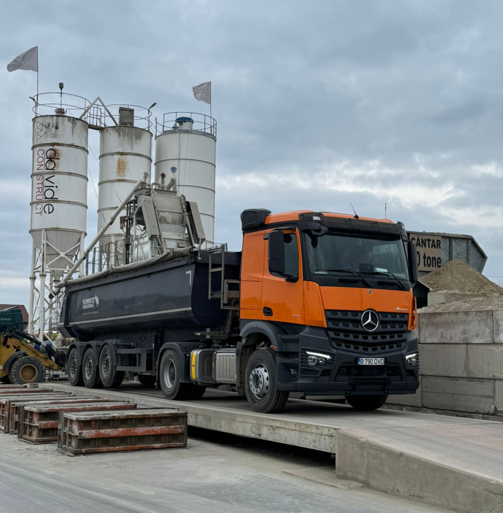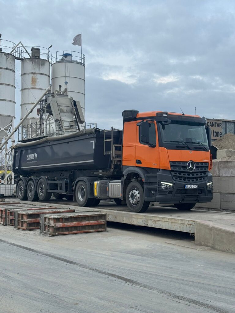 Autobetoniera folosita pentru transportul betonului. Capacitatea de incarcare fiind de 10 mc.